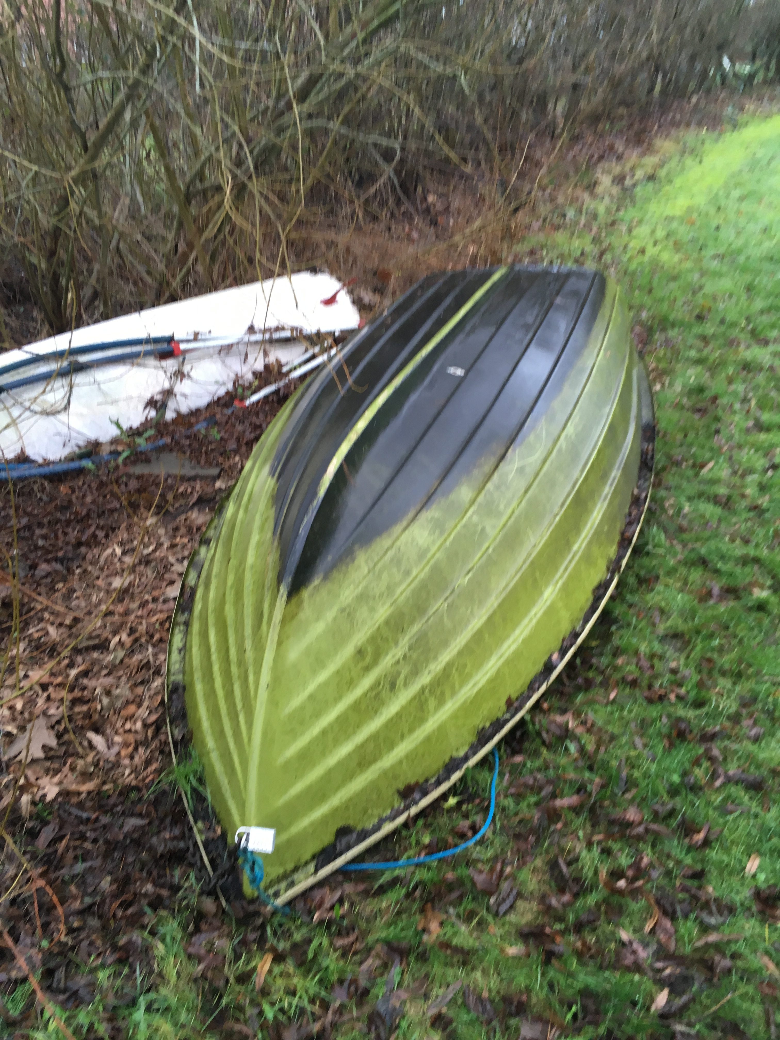 Båden er en lækker, let glasfiberbåd med årer. Midtersædet er gået løst, men det kan sagtens bruges, og vil blive fastmonteret, når foråret kommer. Ankeret er forsvundet, men der kommer nyt anker dertil inden 1/2.